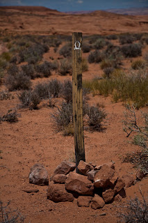 This wooden post marks the course of the pioneer wagons as they crossed the vast distances of the Colorado Plateau on their way to cross the Colorado River at Hole-in-the-Rock. The place where they crossed the Colorado River is now under water, but the vast distances can now be traversed with high clearance vehicles on the Hole-in-the-Rock Trail. Can you imagine crossing this country in a wagon?