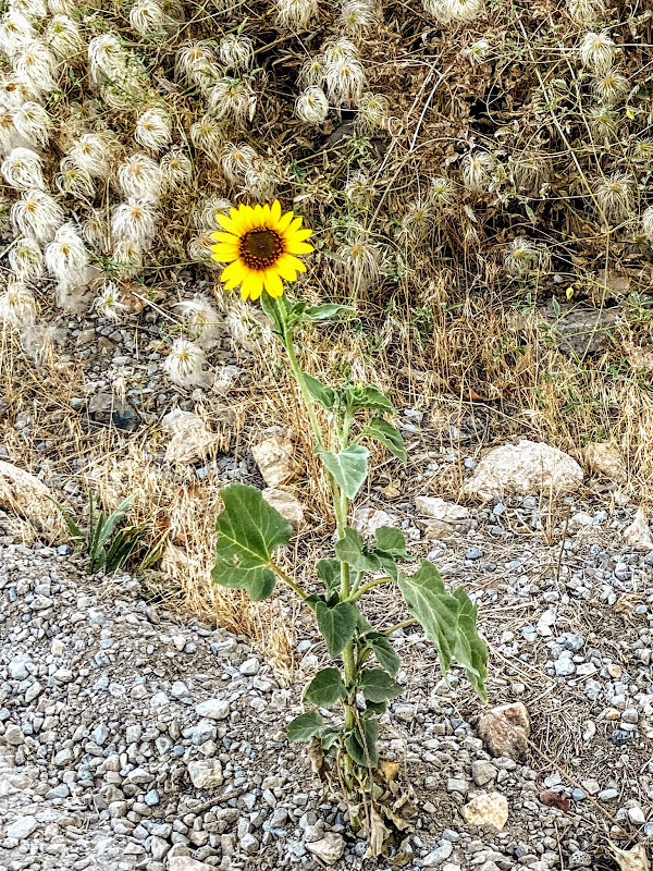 I have mentioned this in previous posts but it bears repeating: bloom where you are planted. This little sunflower plant would not seem to have any of the advantages of a favorable location but it did manage to bloom exactly where the seed fell and germinated. From the looks of the plant, it may have a second bloom also.